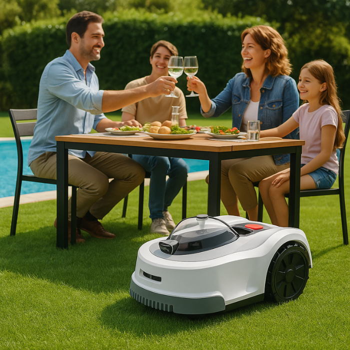 K15 è il robot tagliaerba intelligente che taglia al posto tuo, senza bisogno di fili perimetrali, con navigazione AI + RTK GPS + visione artificiale per un taglio preciso e uniforme.