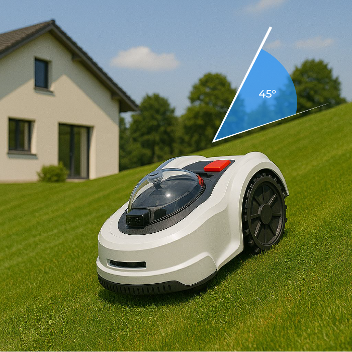 • Perfetto anche in pendenza → lavora senza problemi su terreni inclinati fino al 45% (24,2°).